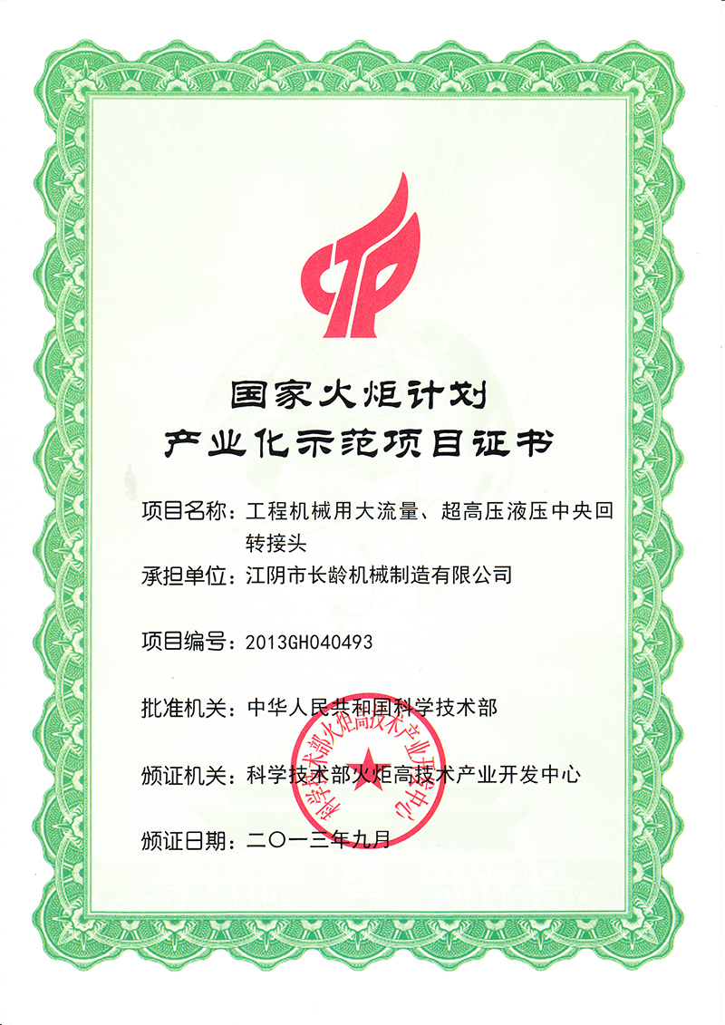 公司主持起草了“GB/T25629-2010液壓挖掘機(jī)中央回轉(zhuǎn)接頭”國家標(biāo)準(zhǔn)并頒布。
